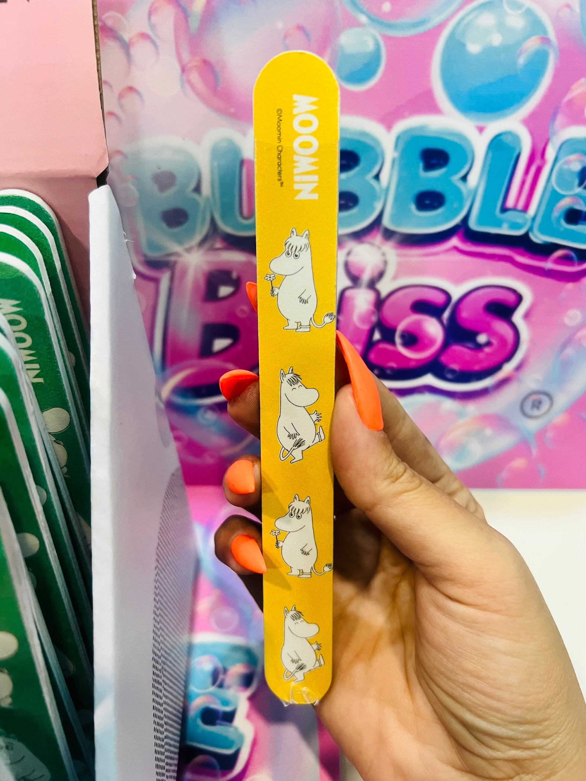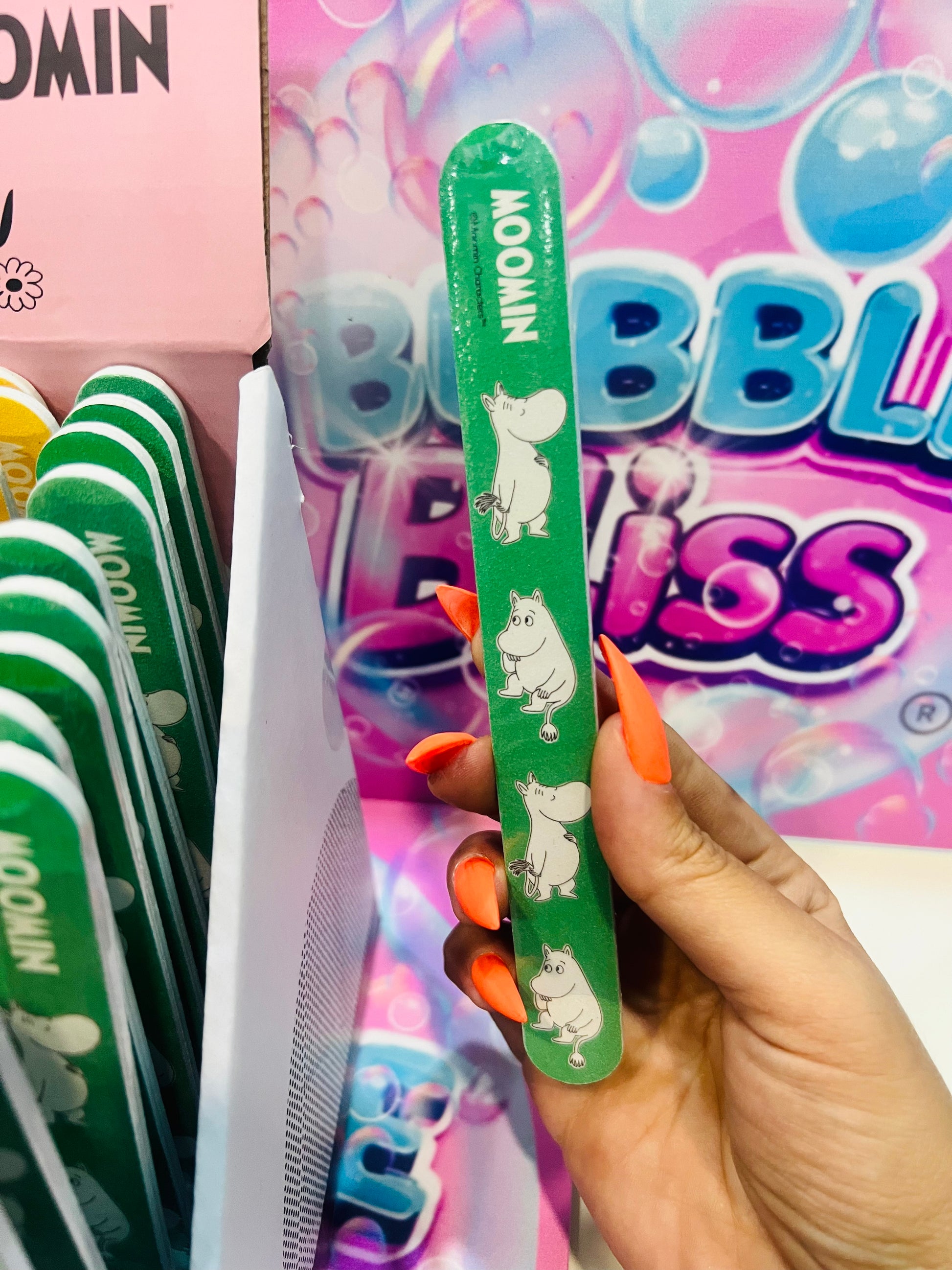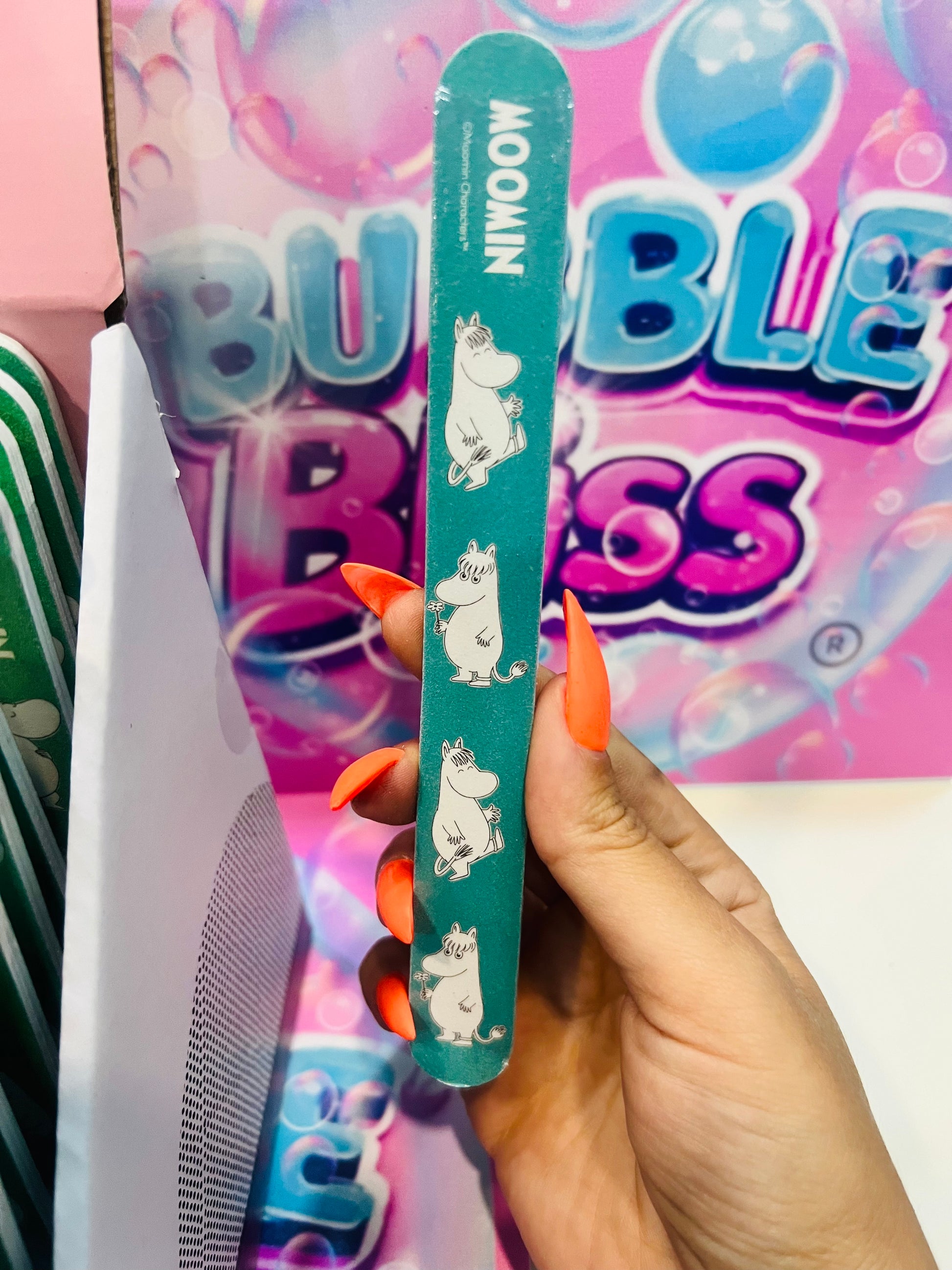 Cuide das suas unhas com estilo usando as Limas de Unhas Moomin! Com design inspirado nos adoráveis personagens Moomin, essas limas são práticas e fáceis de levar para onde você for. Perfeitas para retoques rápidos e com um toque lúdico, elas são ideais para fãs de todas as idades. Disponível para compras online com entrega rápida no mundo inteiro pela Bubble Bliss.